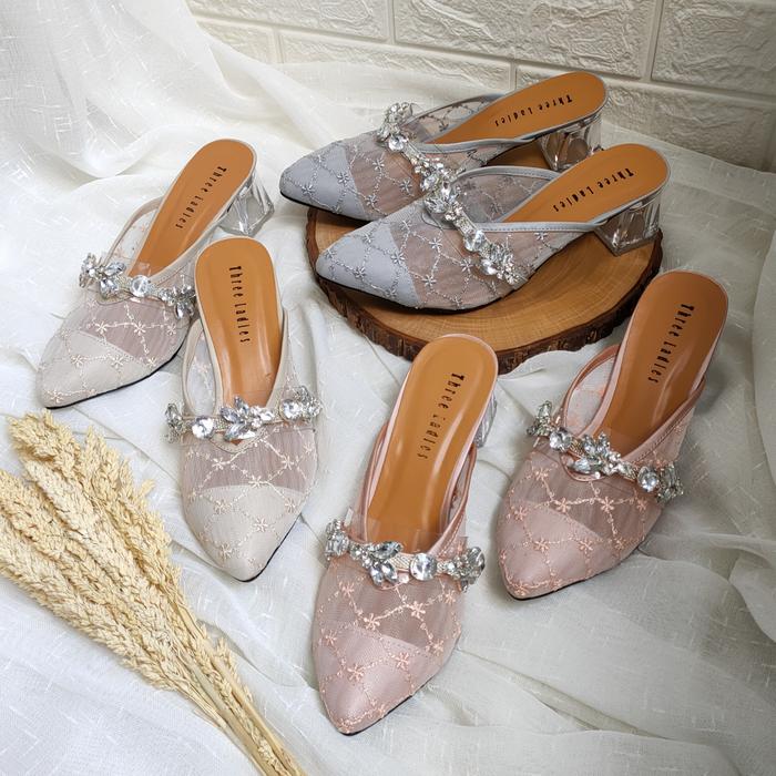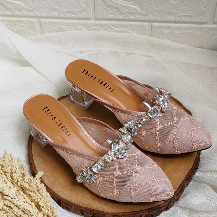 FLASH SALE THREE LADIES AURELLI HEELS SENDAL WANITA HAK 5 CM MERAH MUDA 38