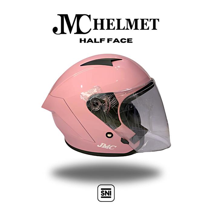 FLASH SALE JMC HELMET HALF FACE PREMIUM EDITION WARNA PINK GLOSSY PRIAWANITA KACA CLEARSMOKE (GRATIS KARDUS) SMOKE