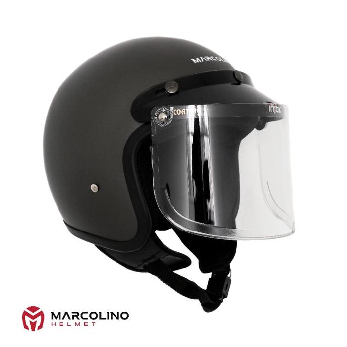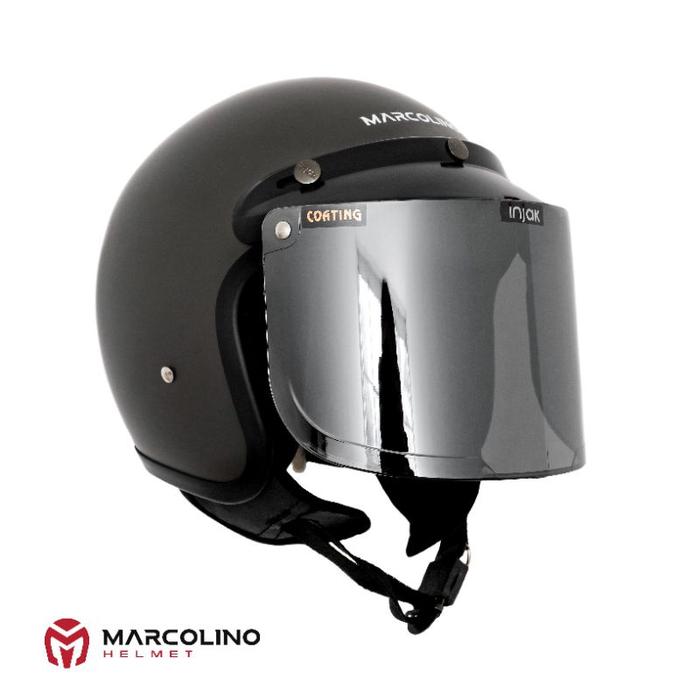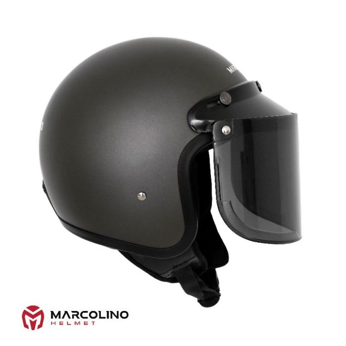 FLASH SALE HELM BOGO RETRO MARCOLINO ABUABU DOFF SNI FLAT VISOR BY JMC HELMET SILVER, S