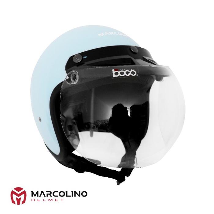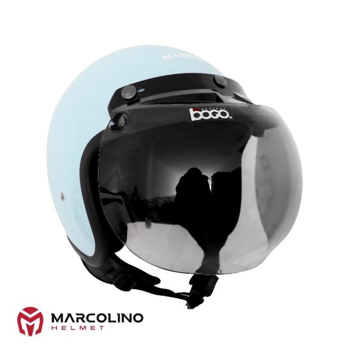 FLASH SALE HELM BOGO RETRO MARCOLINO BLUE PASTEL SNI BOGO VISOR ORIGINAL BY JMC HELMET SMOKE, S