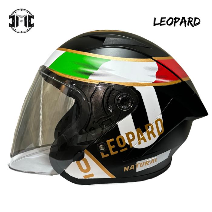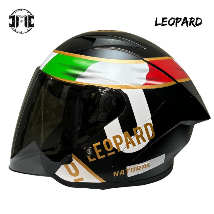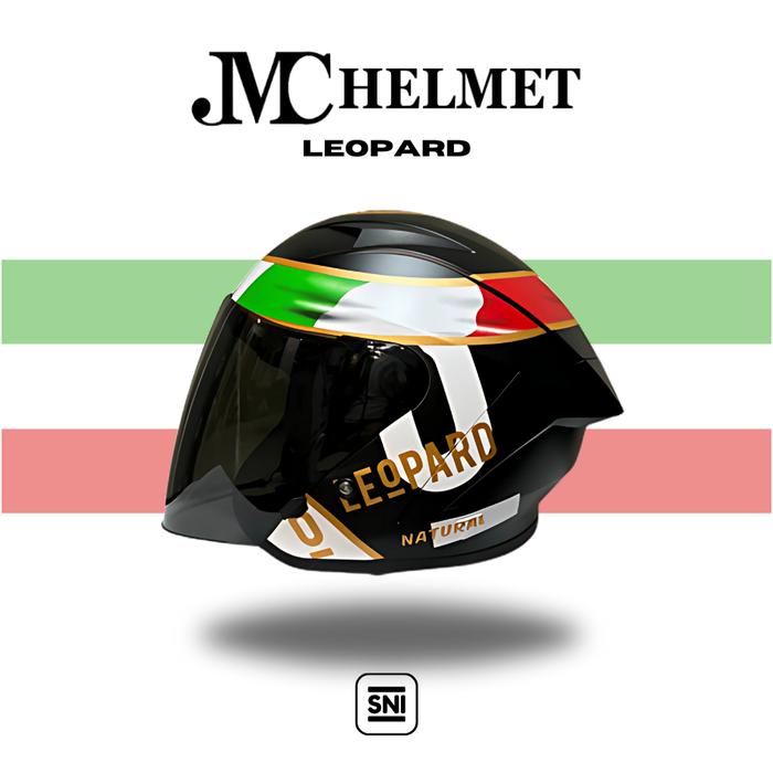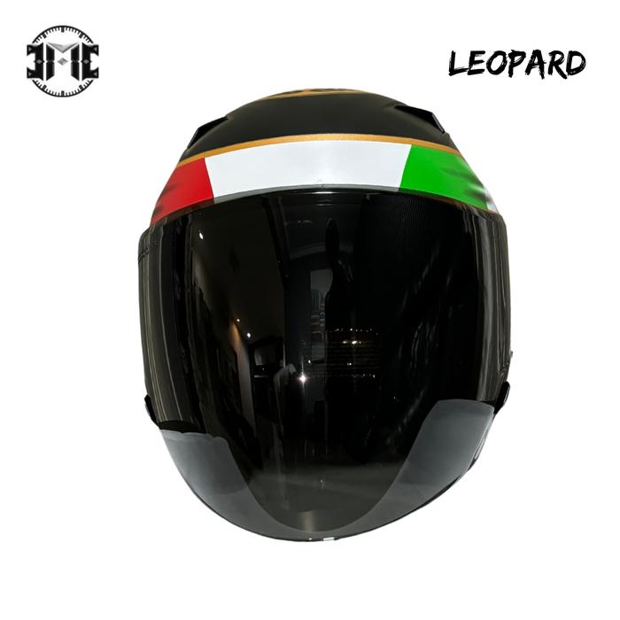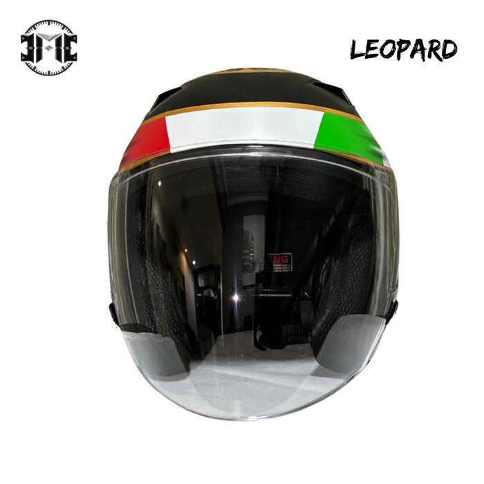 FLASH SALE HELM JMC HALF FACE PREMIUM LEOPARD EDITION BLACK DOFF HITAM DOFF SNI VISOR SMOKE CLEAR GRATIS KARDUS SMOKE