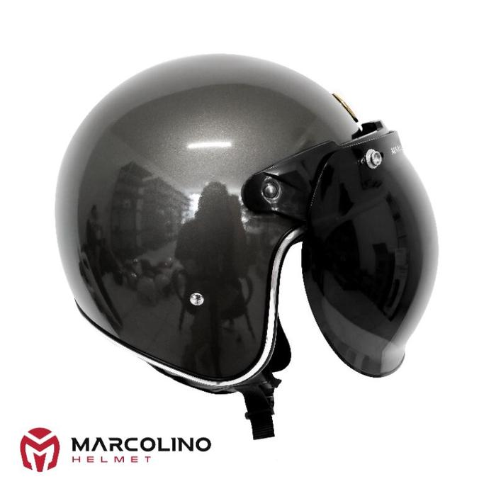 FLASH SALE HELM BOGO RETRO MARCOLINO CLASSIC EDITION ABUABU GLOSSY WITH BUBBLE VISOR SNI BY JMC HELMET S, BUBBLE GD PINK