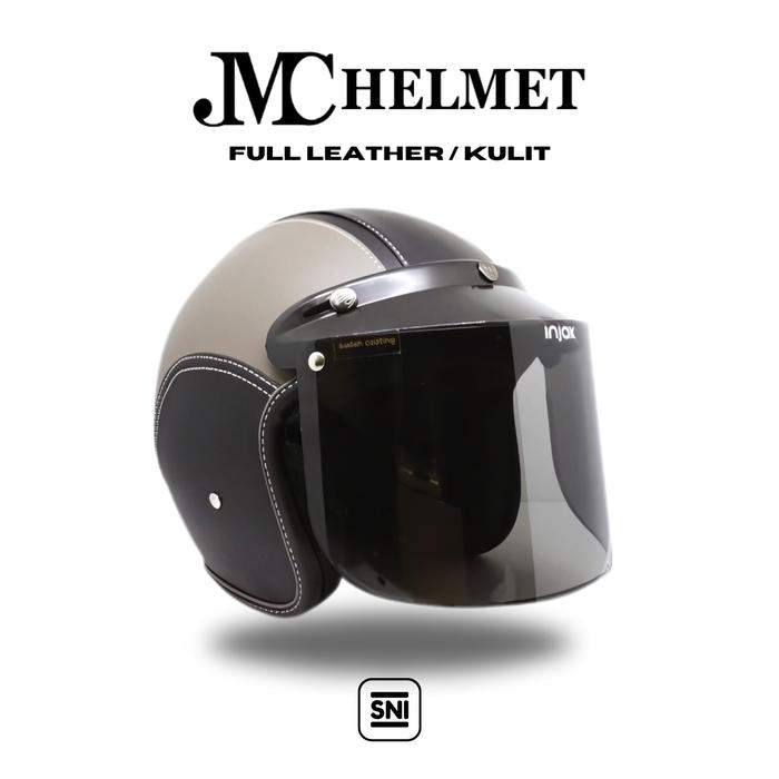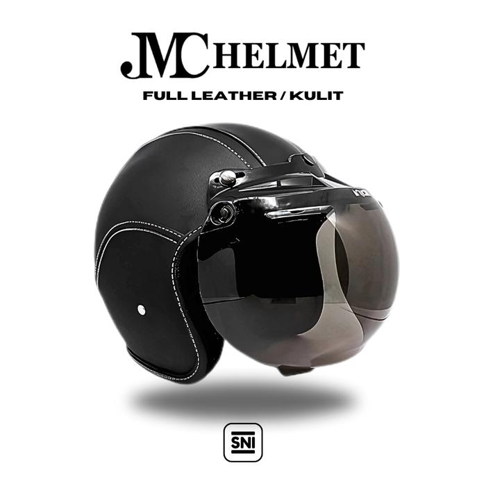FLASH SALE HELM MOTOR BOGO RETRO DEWASA FULL LEATHER KULIT WITH KACA POLOS BIASA SNI (BERAGAM WARNA) FULL HITAM, CEMBUNG SMOKE