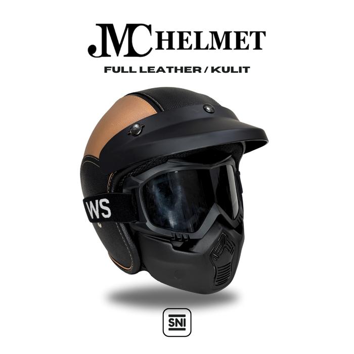 FLASH SALE HELM BOGO RETRO MASK FULL LEATHER SNI HITAM