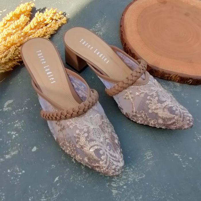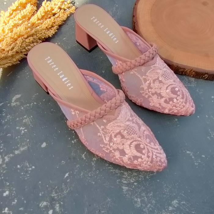 FLASH SALE THREE LADIES ELMARUSY SENDAL BRUKAT WANITA HAK 5 CM HIJAU 41