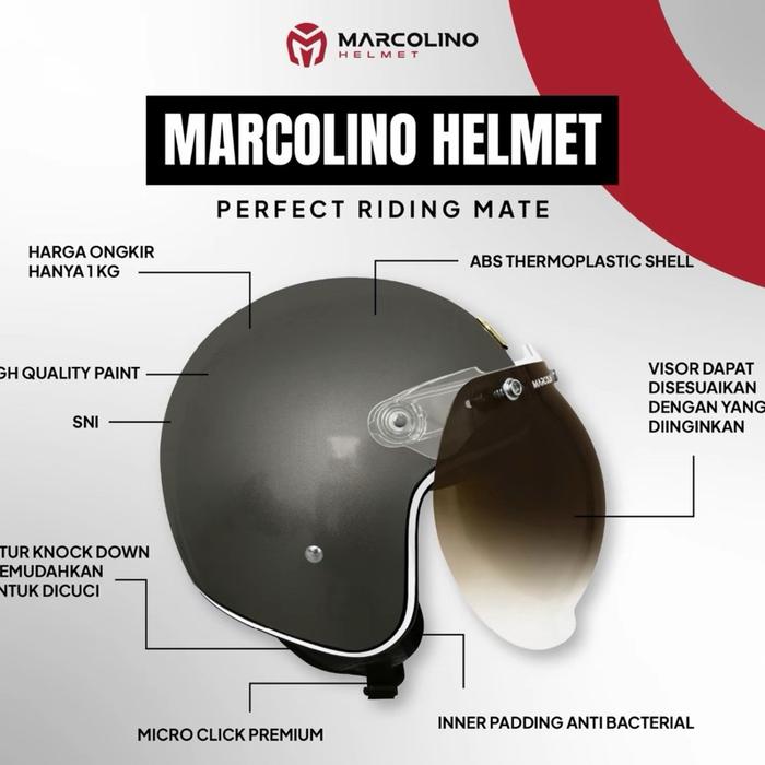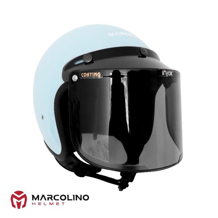 FLASH SALE HELM BOGO RETRO MARCOLINO PASTEL BLUE SNI FLAT VISOR BY JMC HELMET SMOKE, S