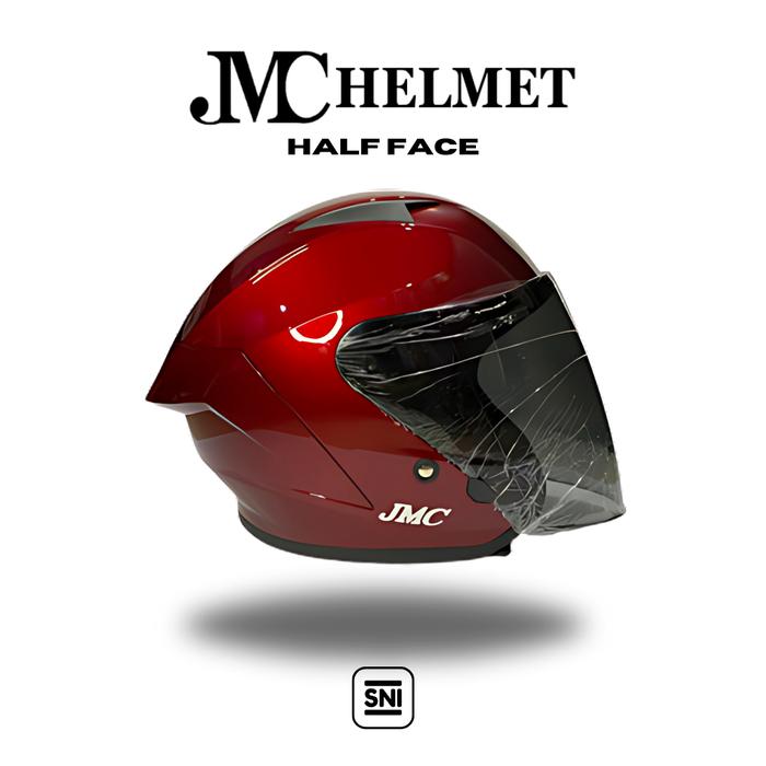FLASH SALE JMC HELMET HALF FACE PREMIUM EDITION WARNA MAROON GLOSSY PRIAWANITA KACA CLEARSMOKE (GRATIS KARDUS) SMOKE