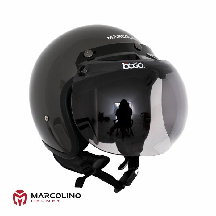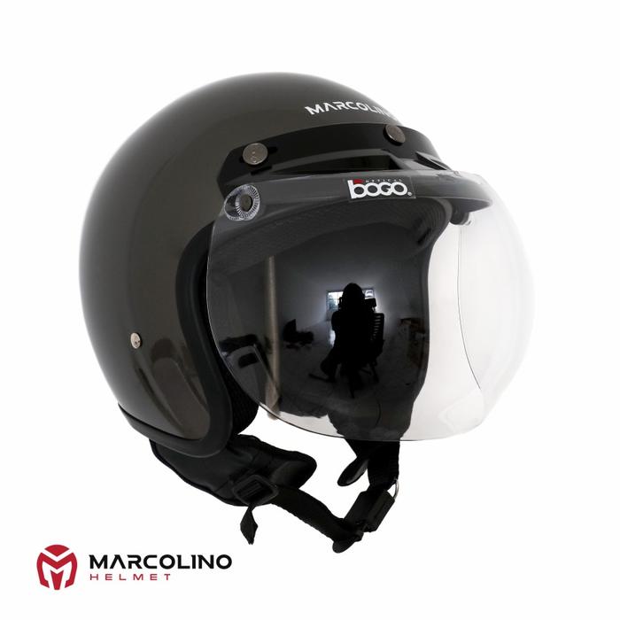 FLASH SALE HELM BOGO RETRO MARCOLINO ABU GREY GLOSSY BOGO ORIGINAL VISOR SNI BY JMC HELMET CEMBUNG ORIGINAL SMOKE, S