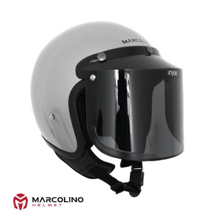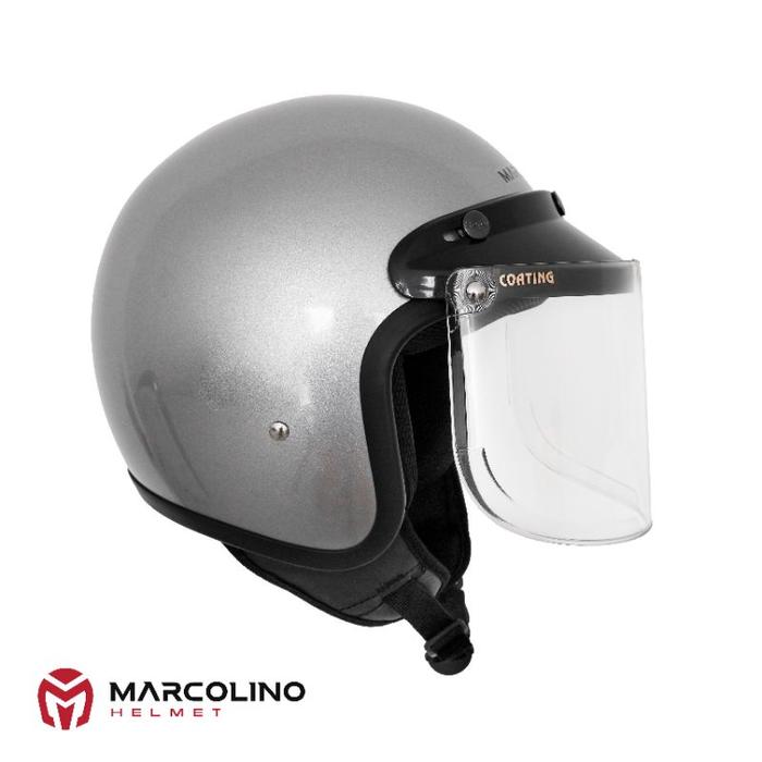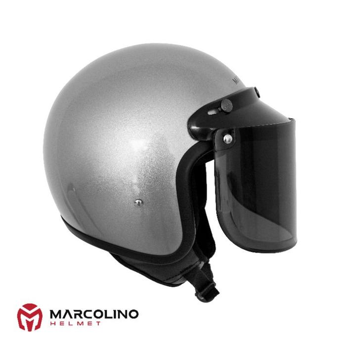FLASH SALE HELM BOGO RETRO MARCOLINO SILVER GLOSSY SNI FLAT VISOR BY JMC HELMET SILVER, S