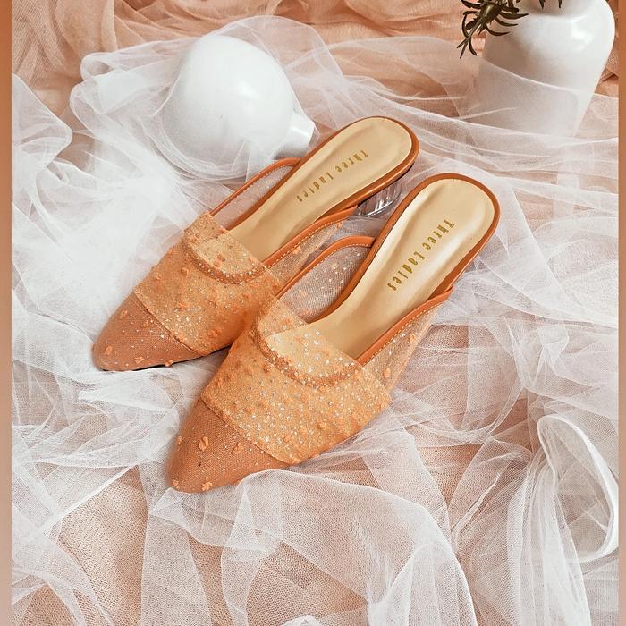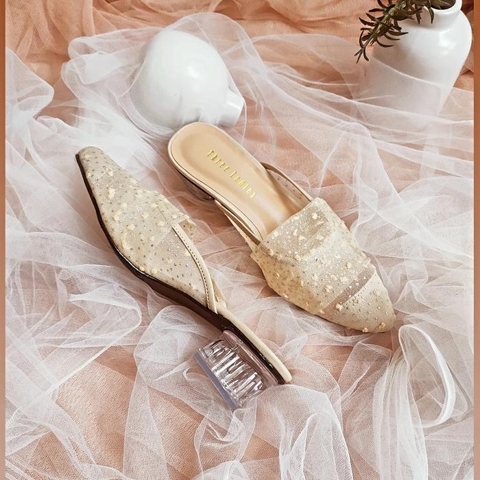 FLASH SALE LIELA HEELS SENDAL WANITA TERBARU SENDAL HAK KACA 3CM CREAM 39