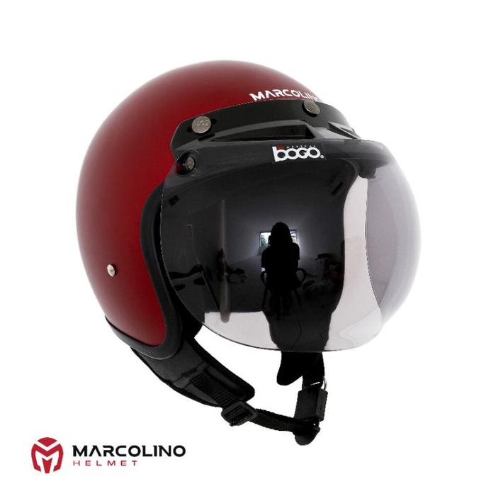 FLASH SALE HELM BOGO RETRO MARCOLINO MAROON DOFF SNI BOGO ORIGINAL BY JMC HELMET SMOKE, S