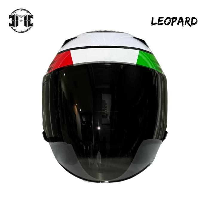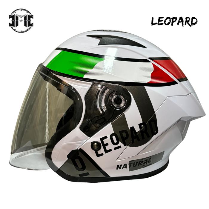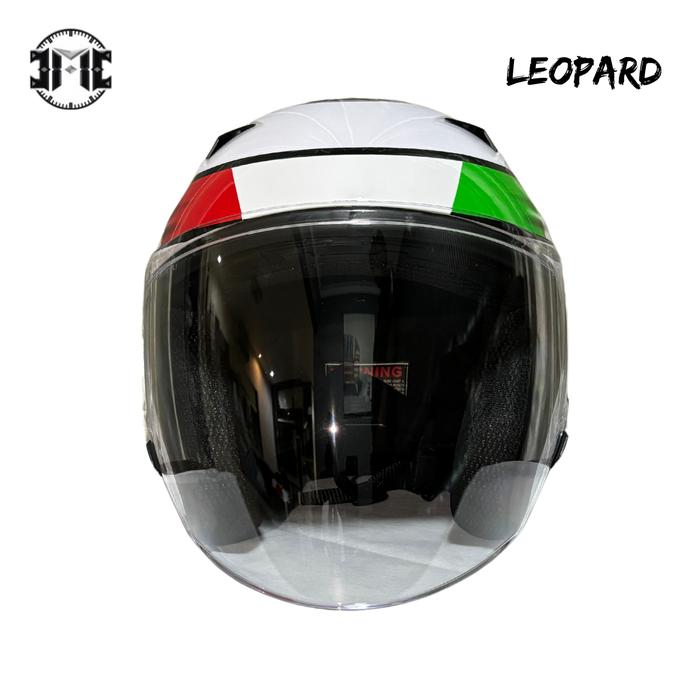 FLASH SALE HELM JMC HALF FACE PREMIUM LEOPARD EDITION WHITE GLOSSY PUTIH SMOKE CLEAR GRATIS KARDUS SMOKE
