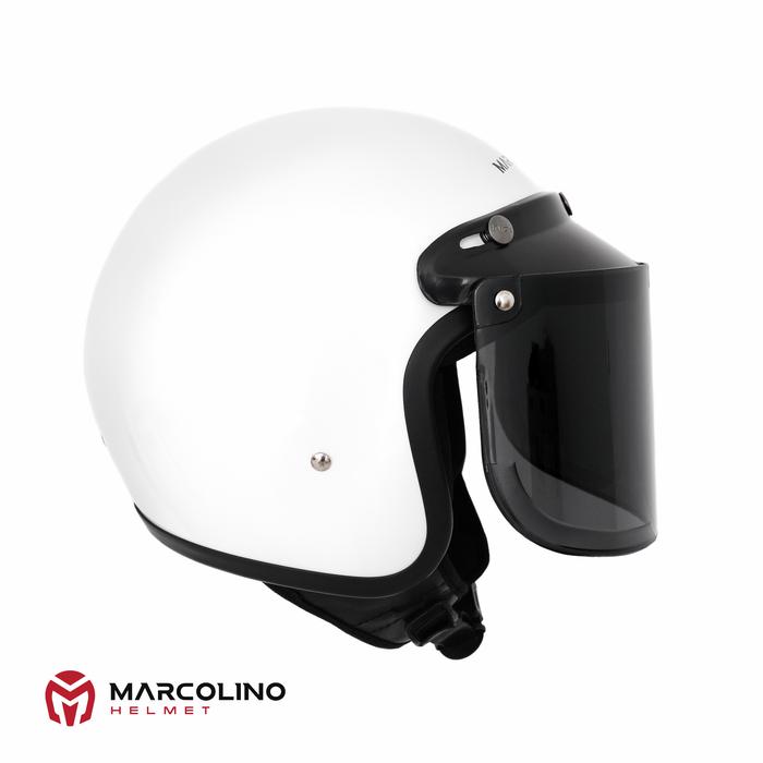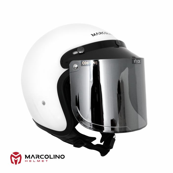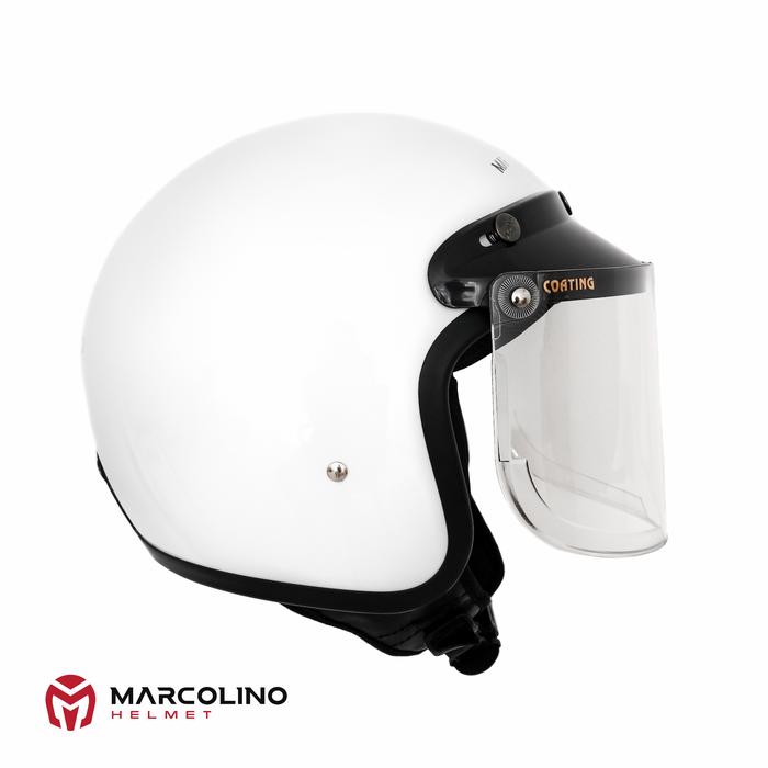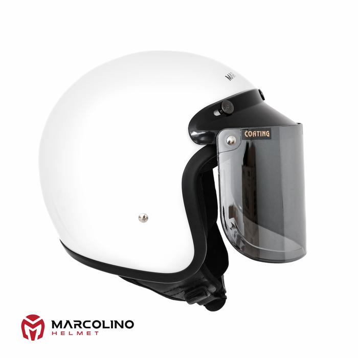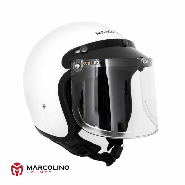 FLASH SALE HELM BOGO RETRO MARCOLINO PUTIH GLOSSY SNI FLAT VISOR BY JMC HELMET CLEAR, S