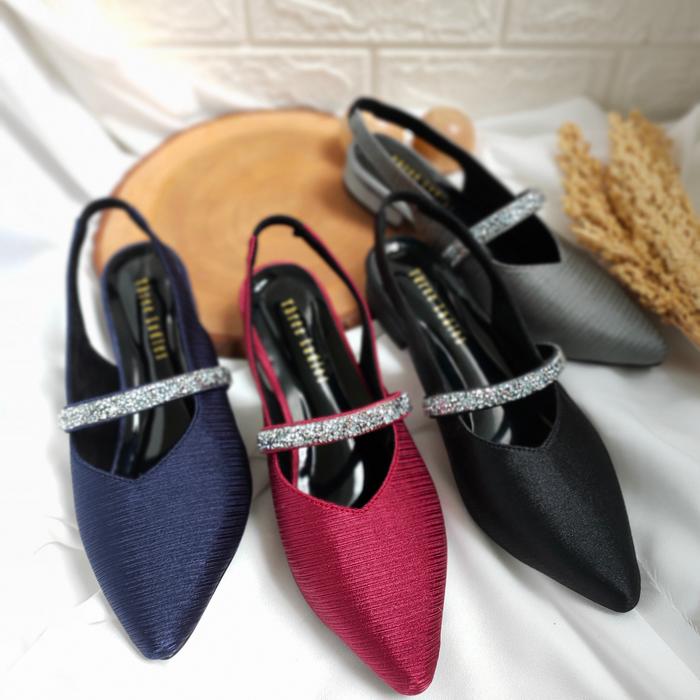 FLASH SALE THREE LADIES SENDAL TALI LAT WANITA HAK 2 CM NAVY 36