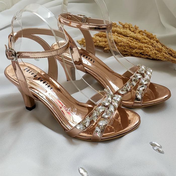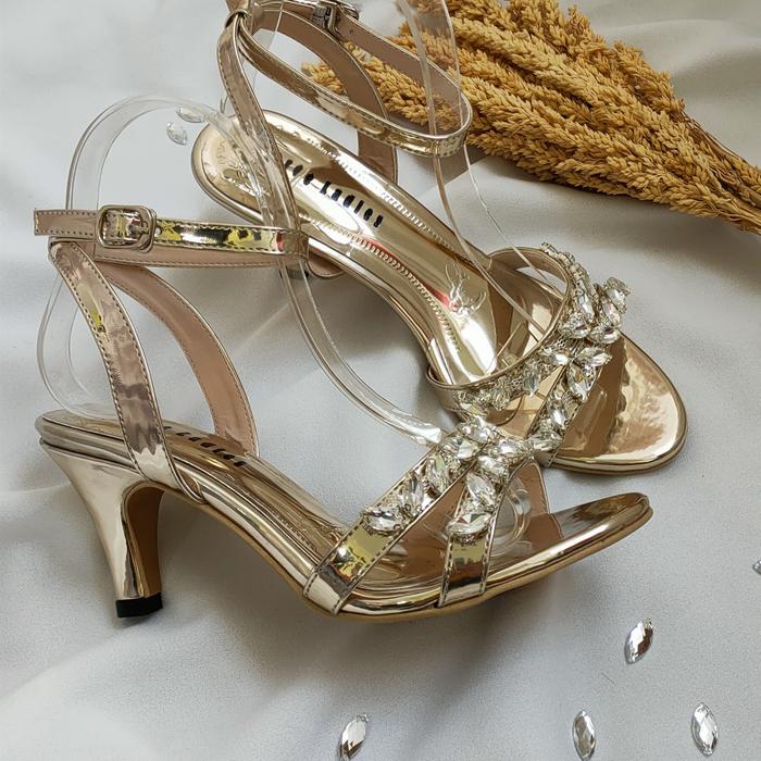 FLASH SALE THREE LADIES SENDAL WANITA QUEEN HEEL 5 CM SILVER 41