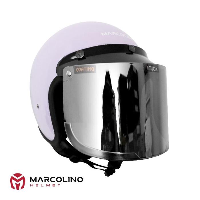 FLASH SALE HELM BOGO RETRO MARCOLINO LILAC PASTEL UNGU PASTEL SNI FLAT VISOR BY JMC HELMET SMOKE, S