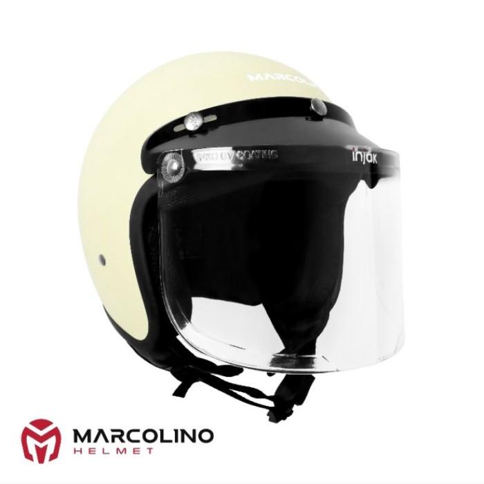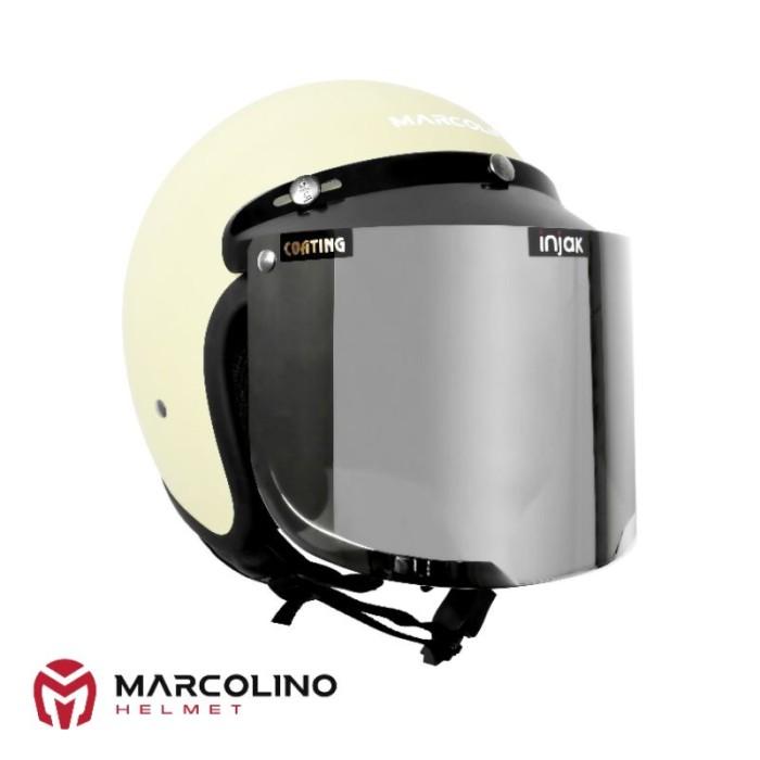FLASH SALE HELM BOGO RETRO MARCOLINO CREAM GLOSSY SNI FLAT VISOR BY JMC HELMET S, SILVER