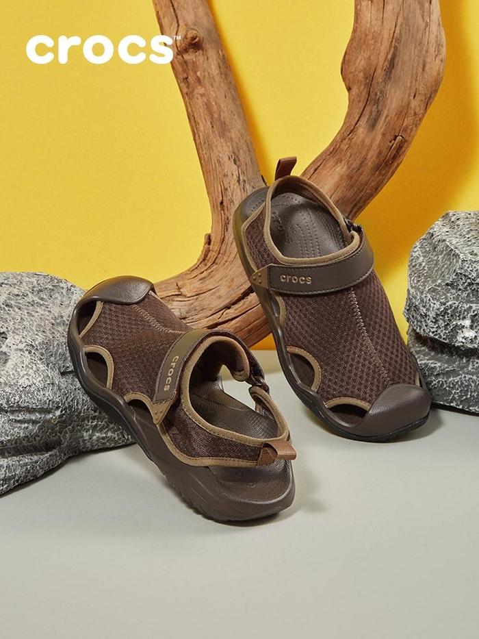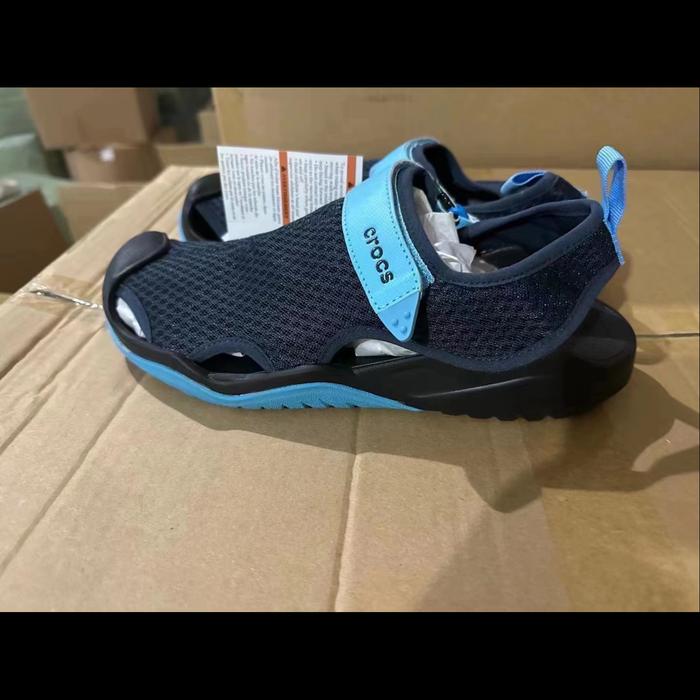 FLASH SALE CROCS CROCS PRIA SEPATU SANDAL CROCS CROCS SWIWATER MESH DECK NAVY ORANGE M7