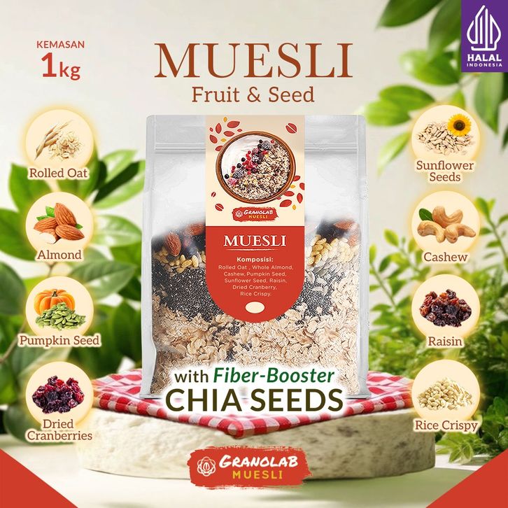 SEREAL MUESLI FRUIT AND SEED 1 KG GRANOLAB MUESLI MENU SARAPAN OAT KISMIS ALMOND TERBARU