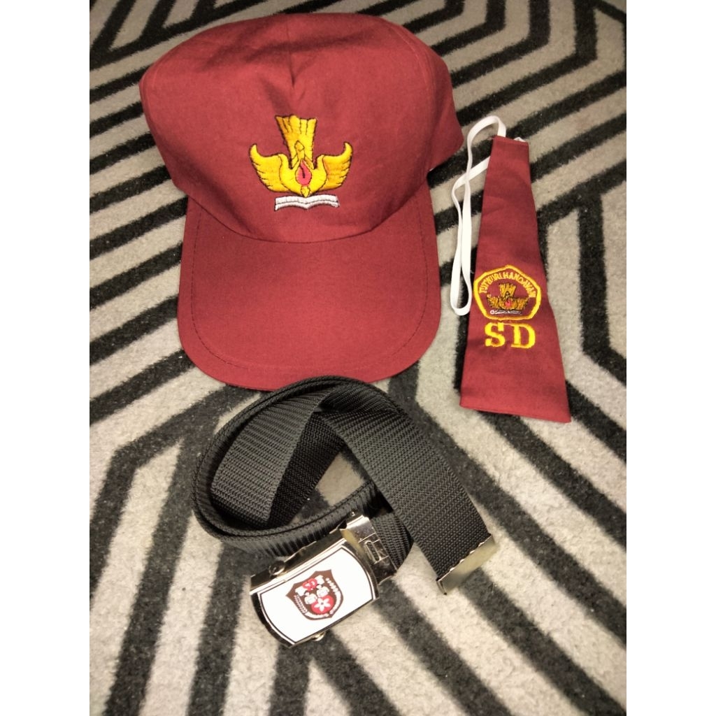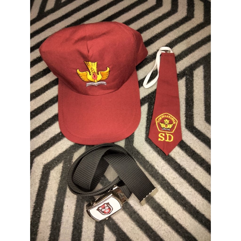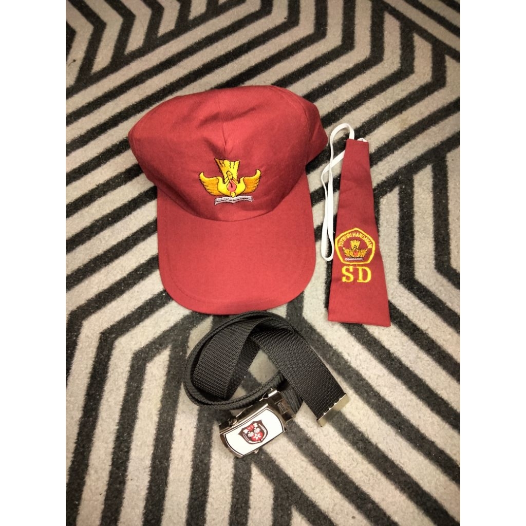 paket hemat perlengkapan sekolah anak SD topi dasi sabuk putra putri