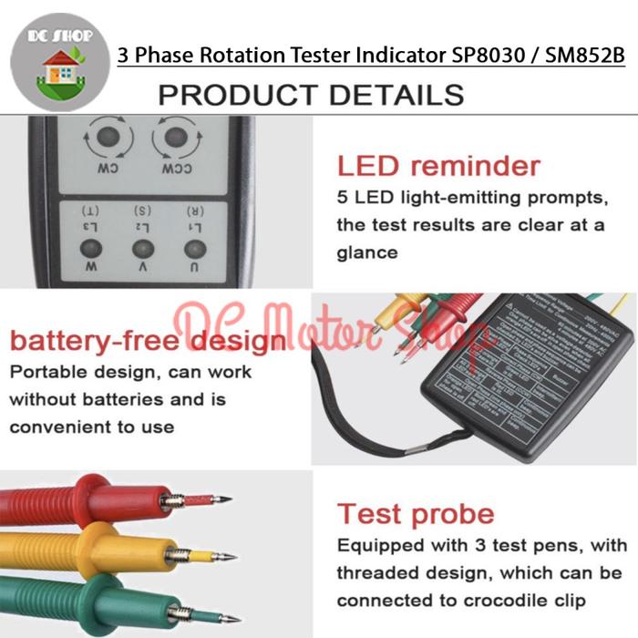 Digital Three 3 Phase Indicator SP8030 SM852B Sequence Rotation Tester