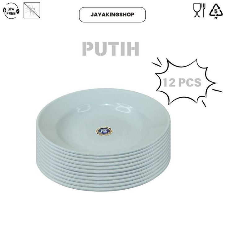 piring makan lusinan melamin keramik PIRING PLASTIK WARNA PUTIH 12 PCS 1 LUSIN BPA FREE