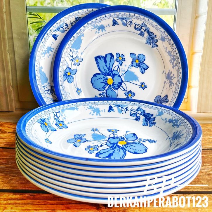 piring makan lusinan melamin keramik 6Pcs Piring Makan Melamin bulat bi-ru Tiongkok 23Cm Tebal Tahan panas Awet
