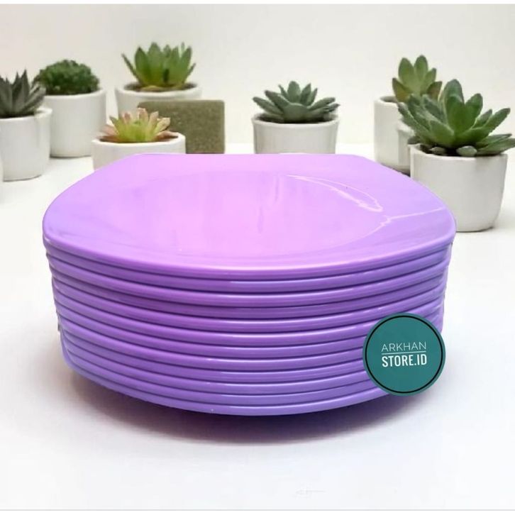 piring makan lusinan melamin keramik 12 PCS PIRING SAJI Melamin 23CM PIRING MAKAN KOTAK TEBAL UNGU MUDA
