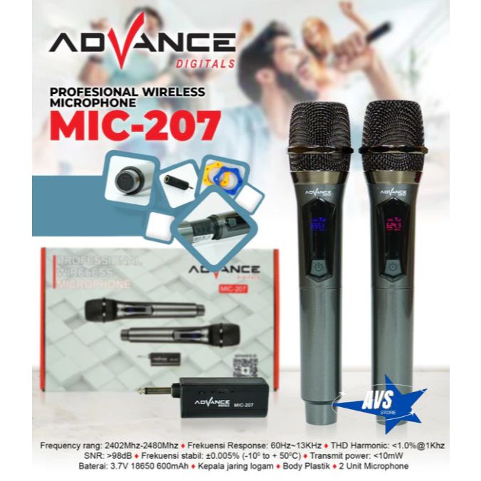 mic wireless ADVANCE PROFESIONAL MICROPHONE WIRELESS MIC 207