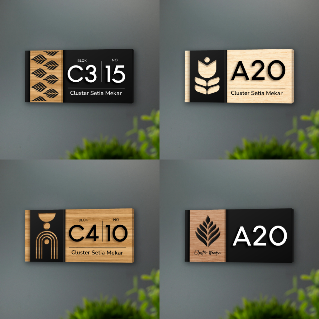 NOMOR RUMAH CUSTOM MOTIF KAYU MINIMALIST UKURAN 30X20 CM