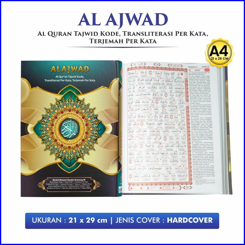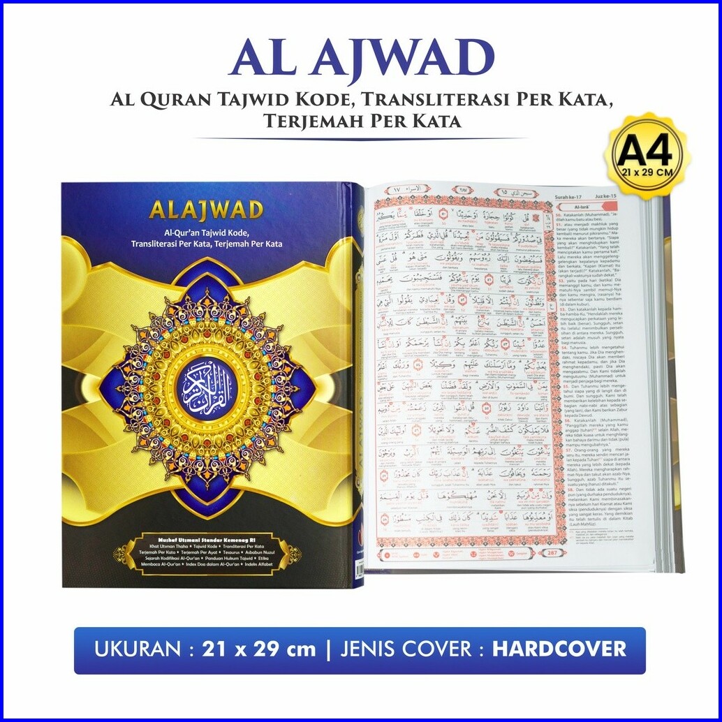 Al Quran Besar Ukuran A4 Alquran Tajwid Kode Al Ajwad Transliterasi Per Kata Terjemah Per Kata Hvs Cipta Bagus Segara -