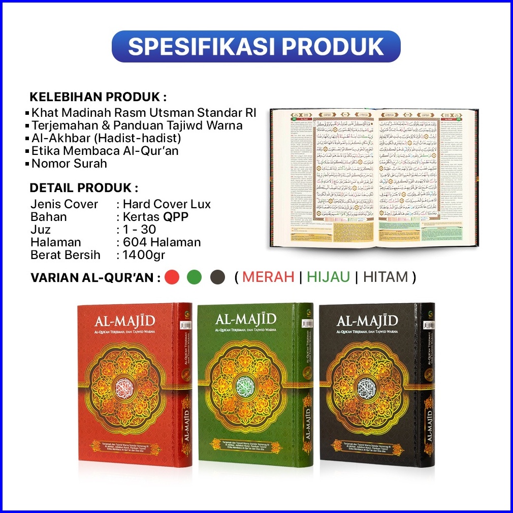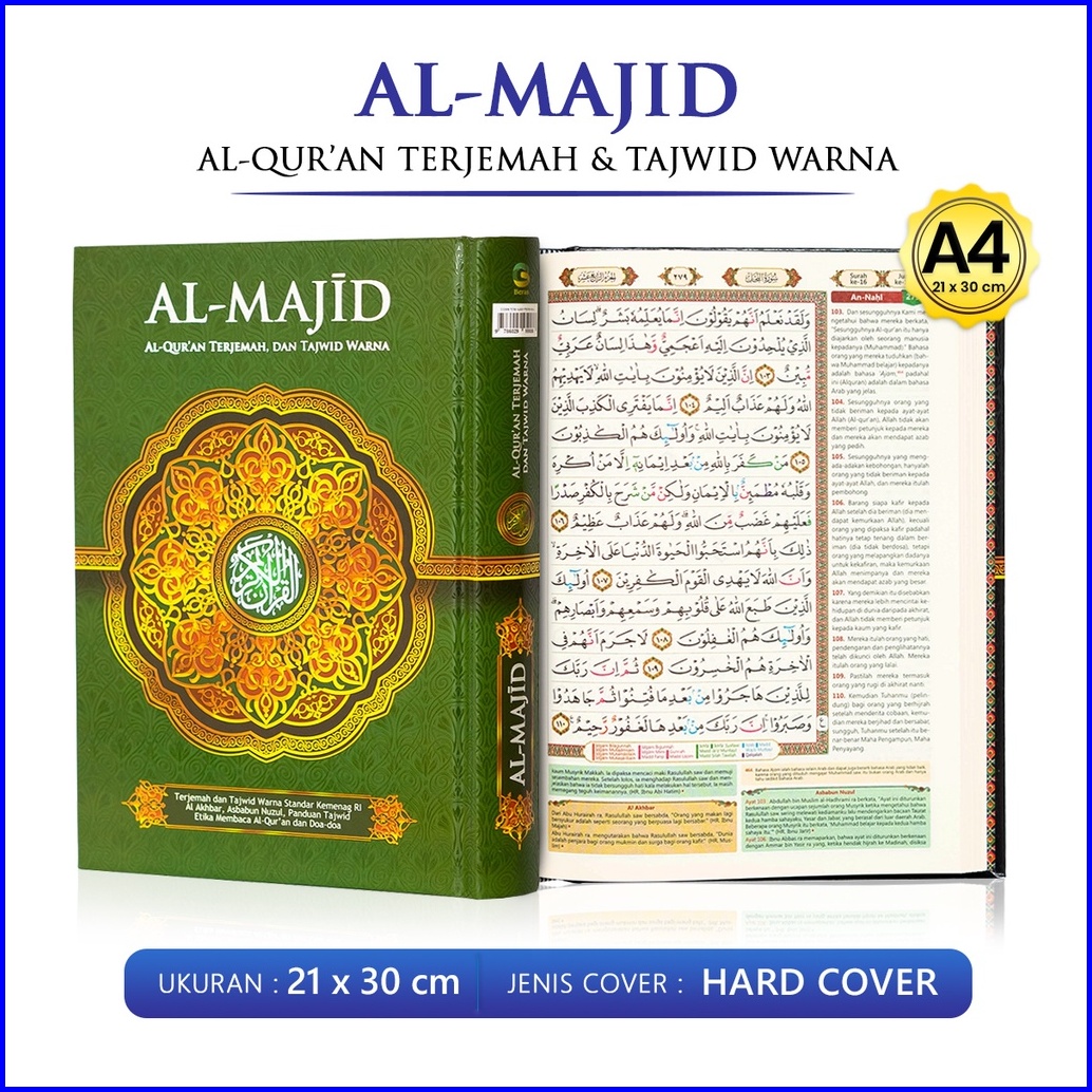 Al Quran Terjemah Tajwid Al Majid Alquran A4 Besar Quran Terjemah Dan Mushaf Tajwid Warna Tb Manfaat - Cdb