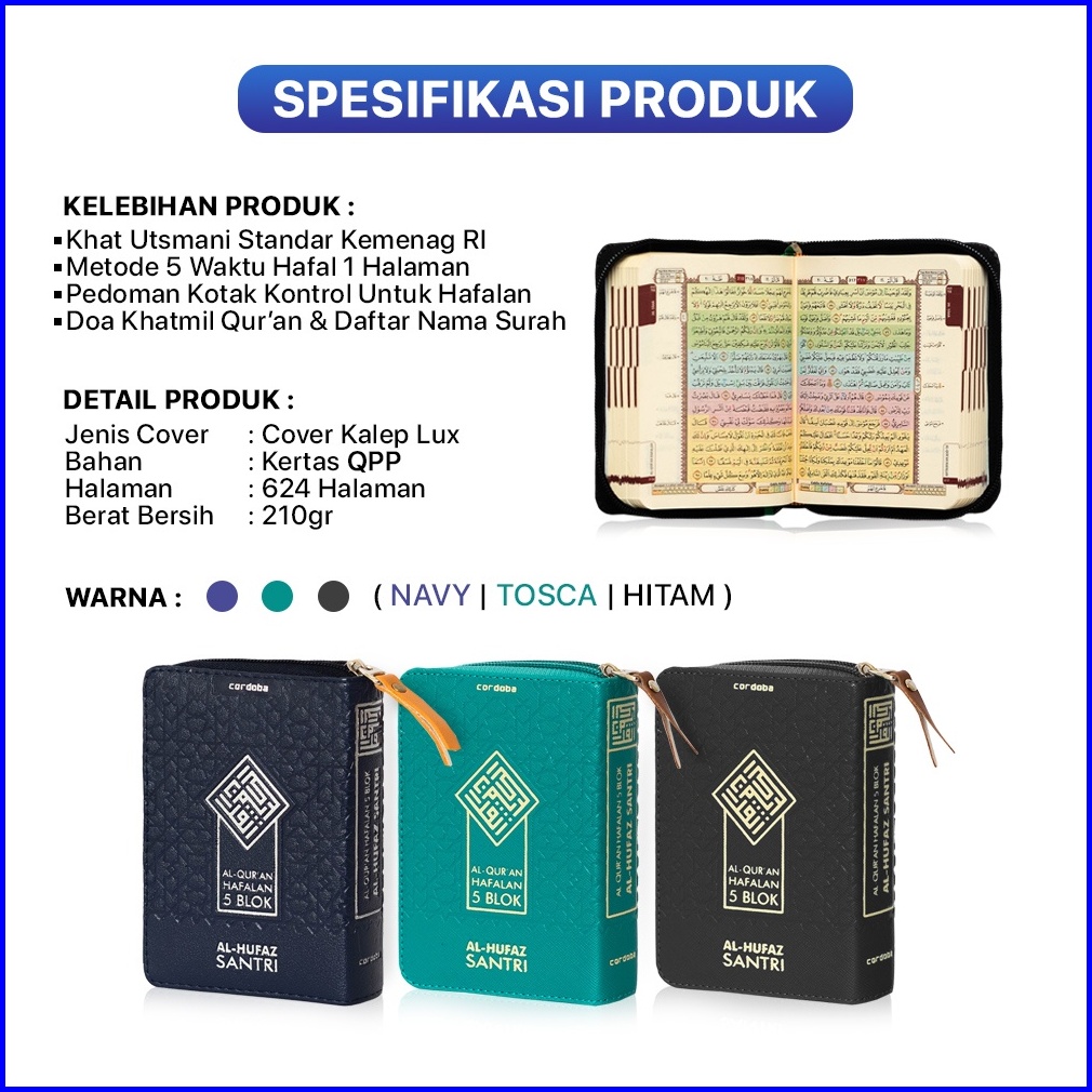 Alquran Kecil Al Hufaz Santri B7al Quran Non Terjemah Tajwid Resleting Quran Hafalan 5 Blok Quran Cordoba Tb Manfaat - C