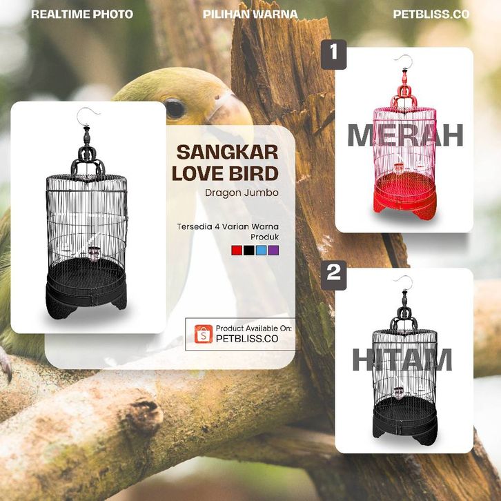 Sangkar Dragon Jumbo Burung Lovebird Kenari Betet Merpati 42cm Fullset Tangkringan & Cepuk