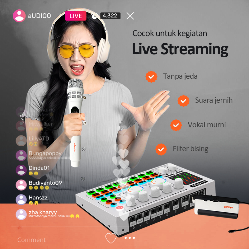 Bonkyo F999MAX Sound card + Mikrofon Nirkabel, set lengkap perlengkapan langsung Kartu suara langsung Bluetooth, F999MAX Soundcard , mixer audio langsung untuk karaoke langsung
