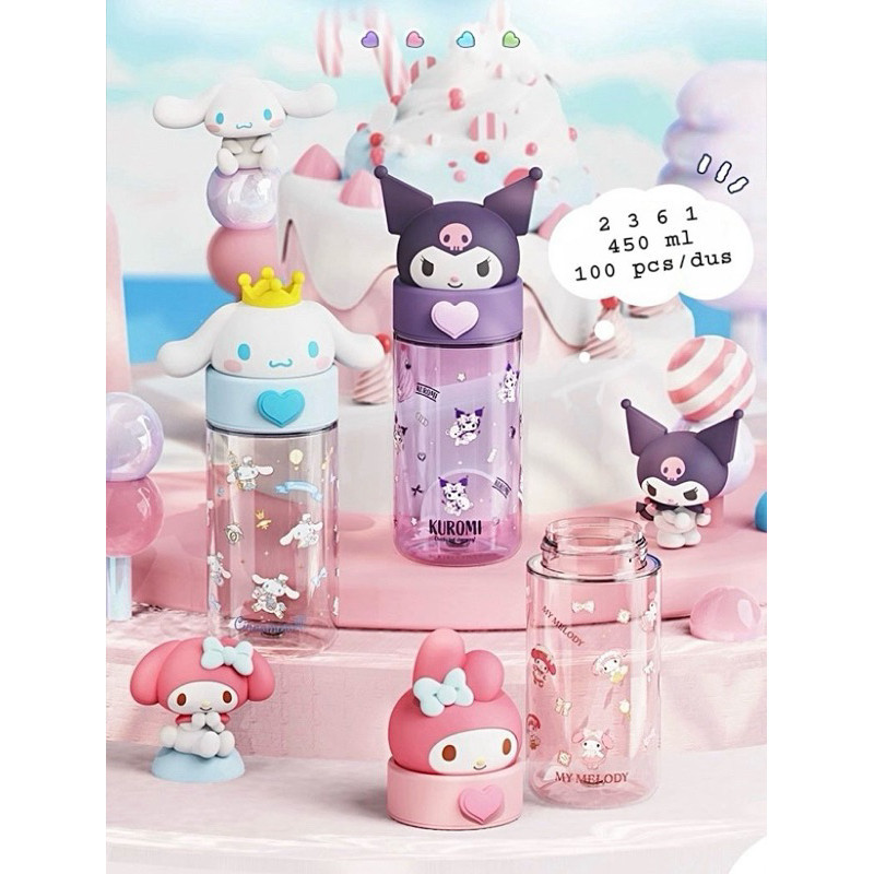 Botol Minum Karakter Sanrio Anak 500 mL Teguk Tritan BPA Free Kuromi / My Melody / Cinnamoroll Free Stiker 3D