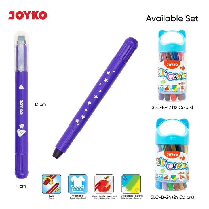 Crayon JOYKO Silky Krayon Halus SLC-B Warna Colors Non Toxic Termasuk Kuas Crayon Warna Cerah Lengkap Best Seller Murah