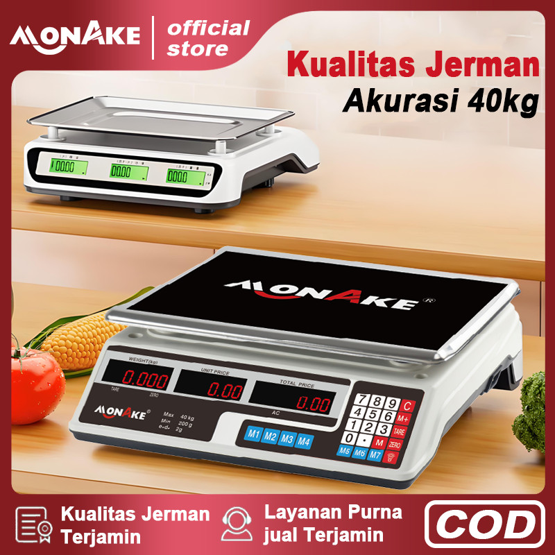 MONAKE German 40KG Digital Computing Scale Timbangan Buah Digital Double Display