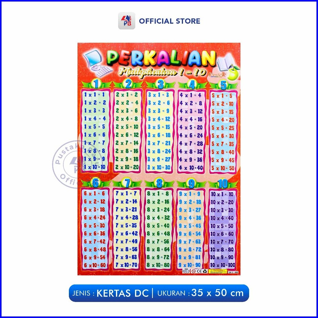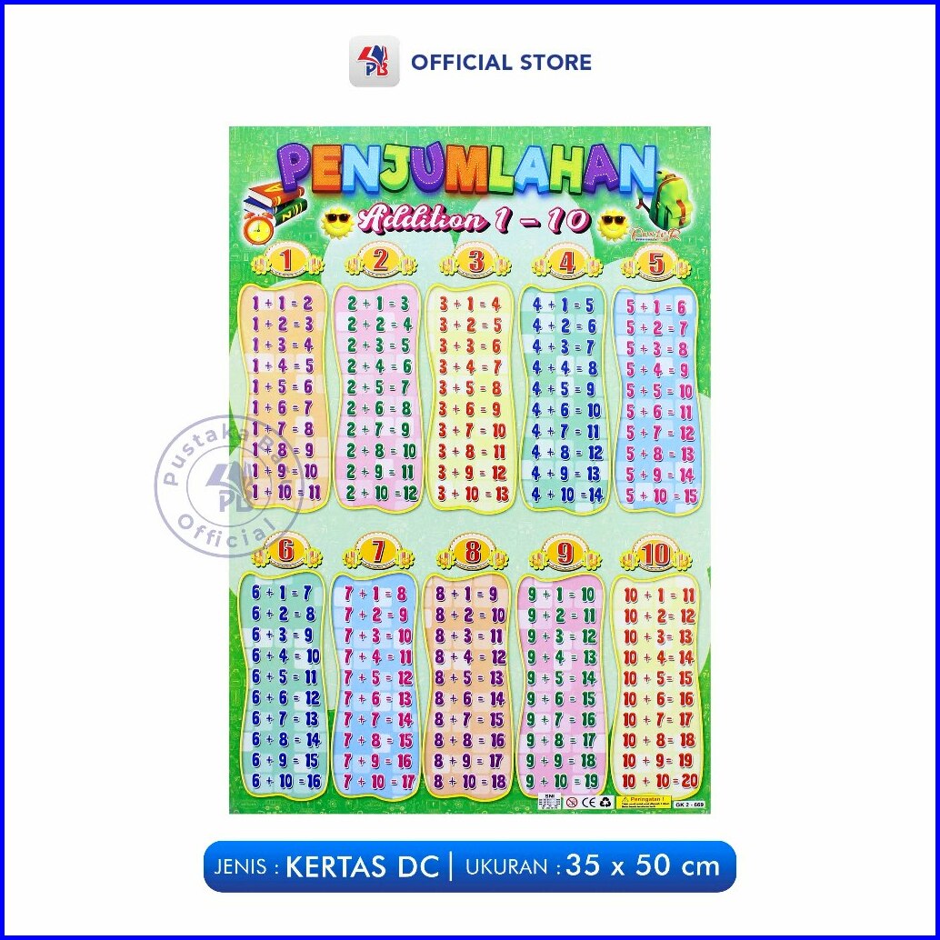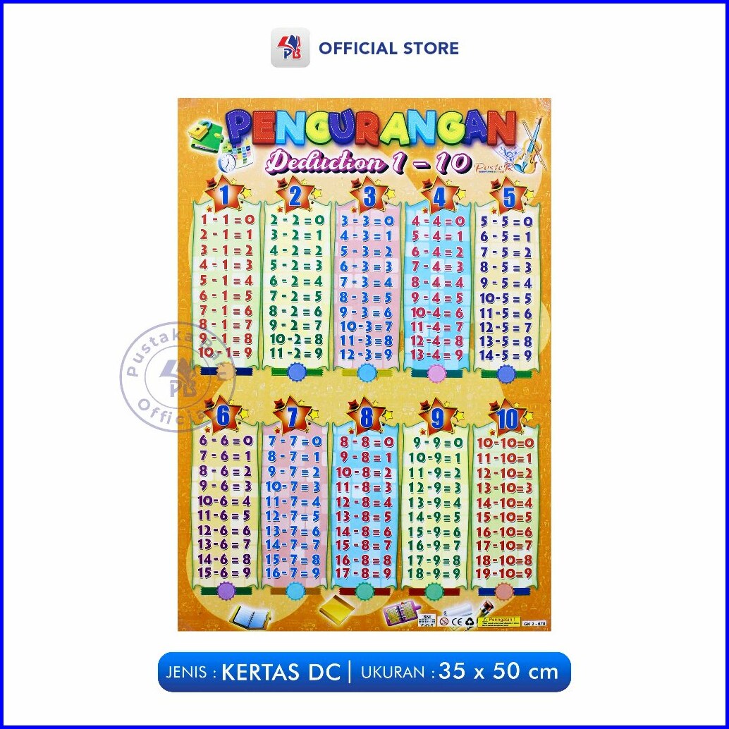Poster Edukasi Anak Mainan Edukasi Anak Number Angka Pembagian Pengurangan Perkalian Penjumlahan Berwarna Pustaka Baru P