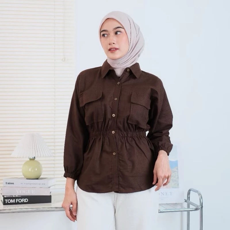YUWAY - Beena Linen Shirt Top Atasan Wanita Blouse Casual Polos Terbaru