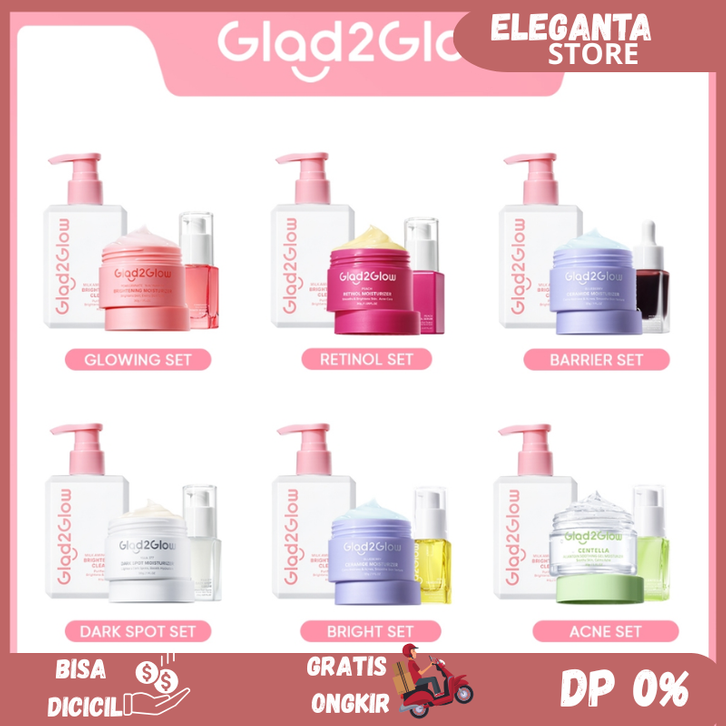 glad 2 glow official Glad2Glow bundle 3in1 paket Skincare- Moisturizer+Serum+Cleanser- Face Wash Glowing Kit Dark Spot