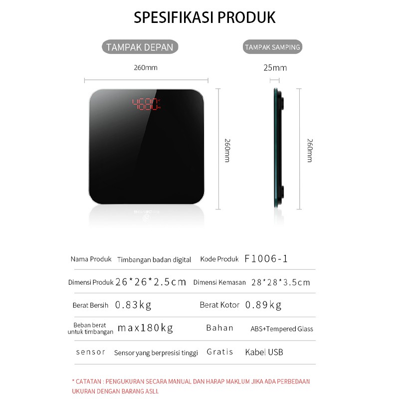 [Pengiriman dari Banjarmasin]HAN RIVER Timbangan Digital/Timbangan Badan Digital(Memuat Beban 180kg)