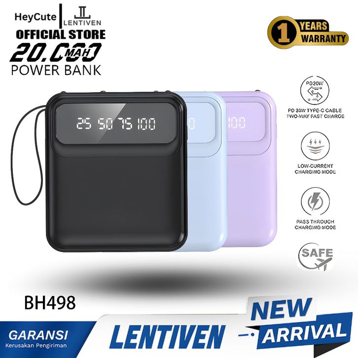 powerbank fast charging HEYCUTE LENTIVEN Powerbank 20000mah Mini Size With 4 Kabel Data Fast Charging Dual Output Led D