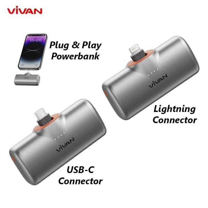 powerbank fast charging Powerbank Mini Vivan VPB-A05C USB-C / VPB-A05L Lightning Smart Powerbank Plug & Play 4800mAH Po