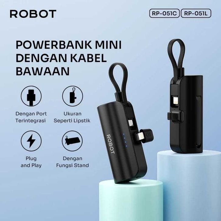 powerbank fast charging Aa ROBOT RP-051L PowerBank Mini 4500mAh Port Type-C Lightning