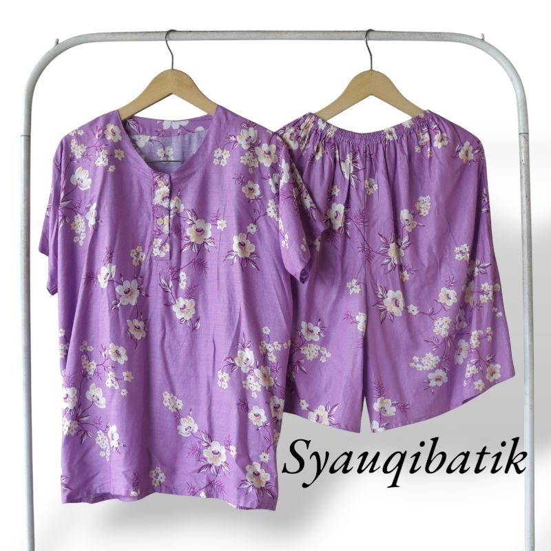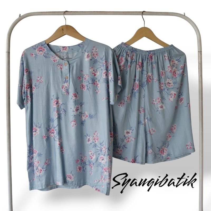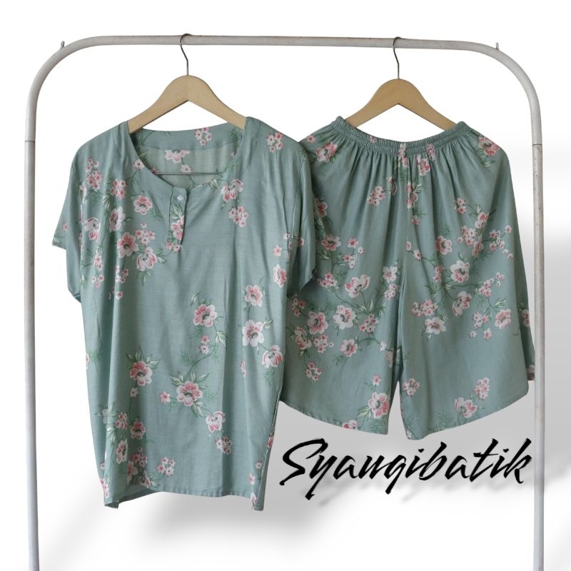 Setelan Baju Tidur Piyama Celana Pendek Motif Bunga Bahan Rayon
