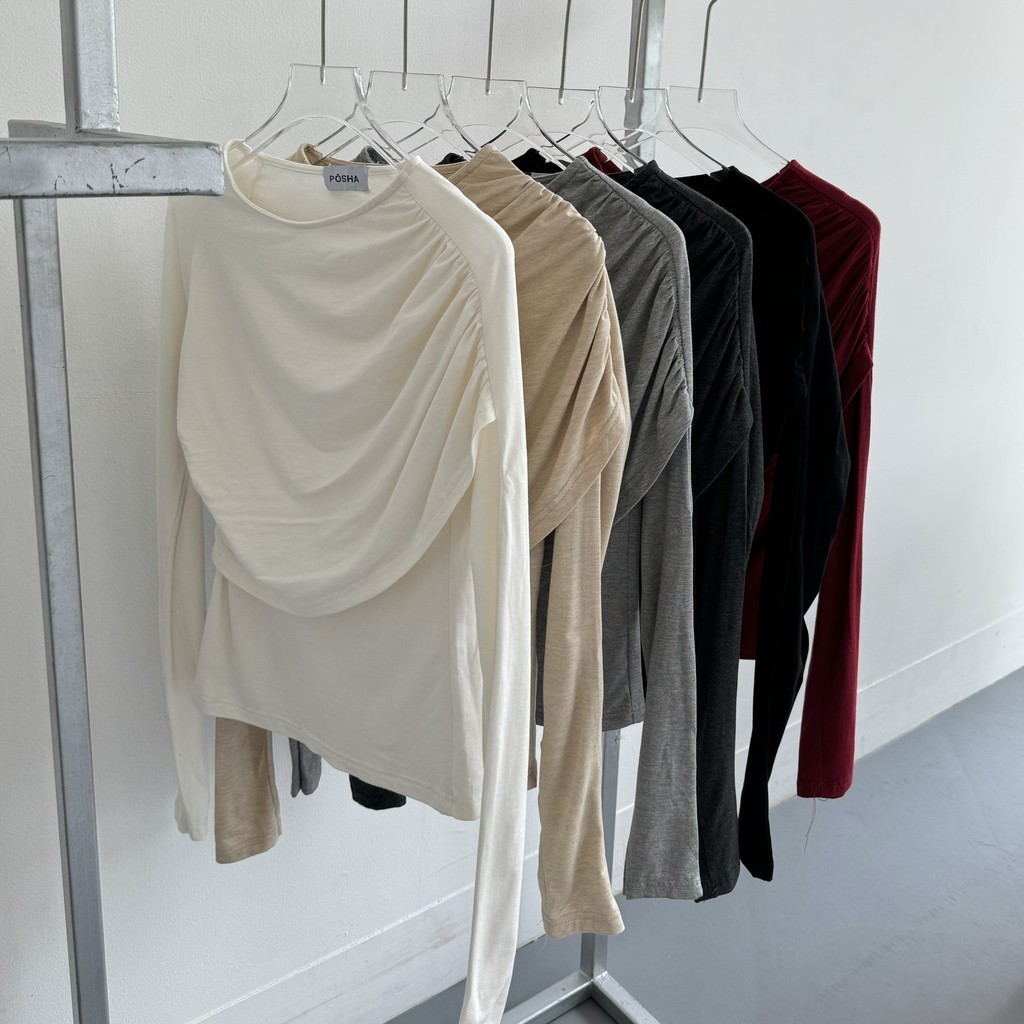 PEGGY T0P - Atasan Wanita Lengan Panjang Kaos Korean Top Basic Baju Summer Knit Rib Long Short Sleeve Posha