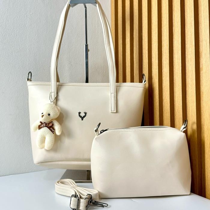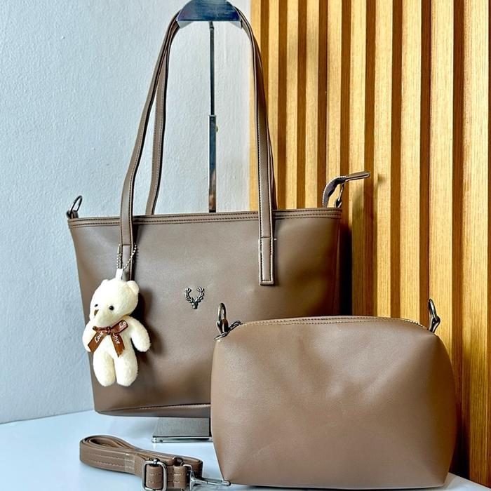 Naya tas shoulder dan selempang wanita by Nasta free pouch dan gantungan boneka bear bahan kulit sintetis - Moca