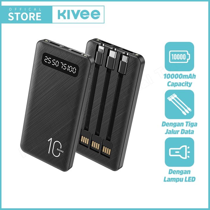 powerbank fast charging KIVEE Powerbank 10000 mAh Murah Mini with Kabel Data lightning Type C Micro Original