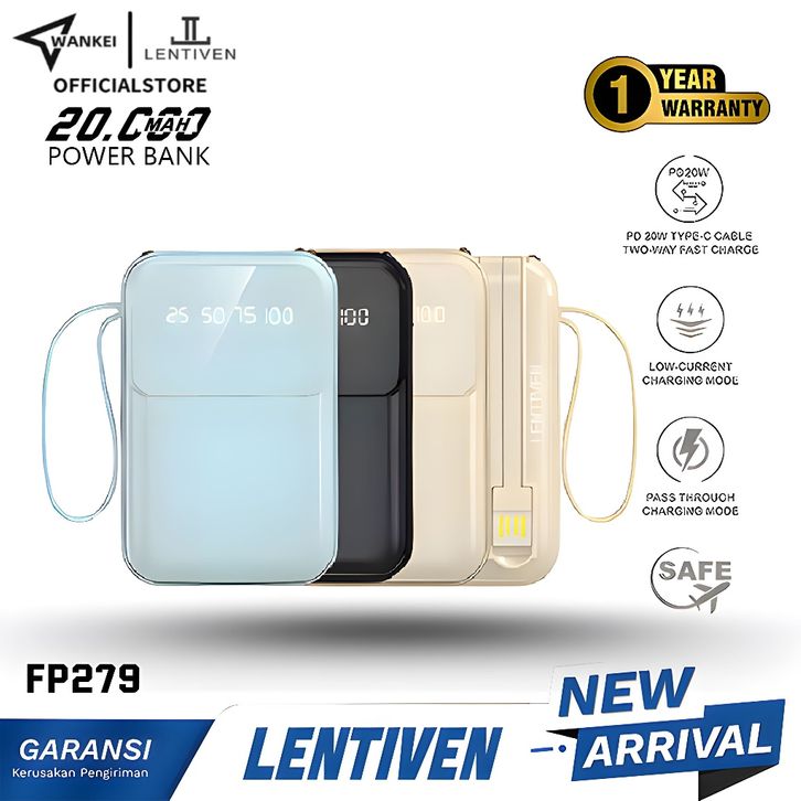 powerbank fast charging WANKEI LENTIVEN Powerbank 20000 mAh Mini With 4 Kabel Data Type C Micro USB Fast Charging LED S